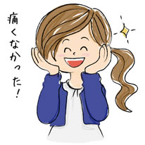 - 麻酔技術の進歩のおかげで、最近ではほとんど痛みを感じない治療が行えるようになりました。『歯医者=痛い』思い出のせいで歯医者が嫌いになってしまった方も、一度お気軽にお越し下さい。